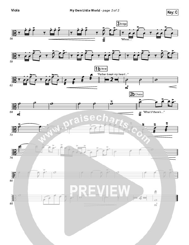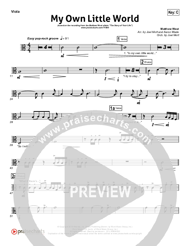 Download the Viola sheet music for My Own Little World by Matthew West, from the album The Story Of Your Life. This song was arranged by Joel Mott / Aaron Wade in the key of C, Db.