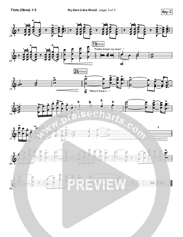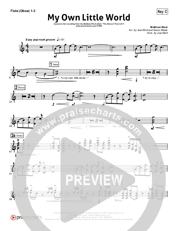 Download the Orchestration wind parts for My Own Little World by Matthew West, from the album The Story Of Your Life. This song was arranged by Joel Mott / Aaron Wade in the key of C, Db.