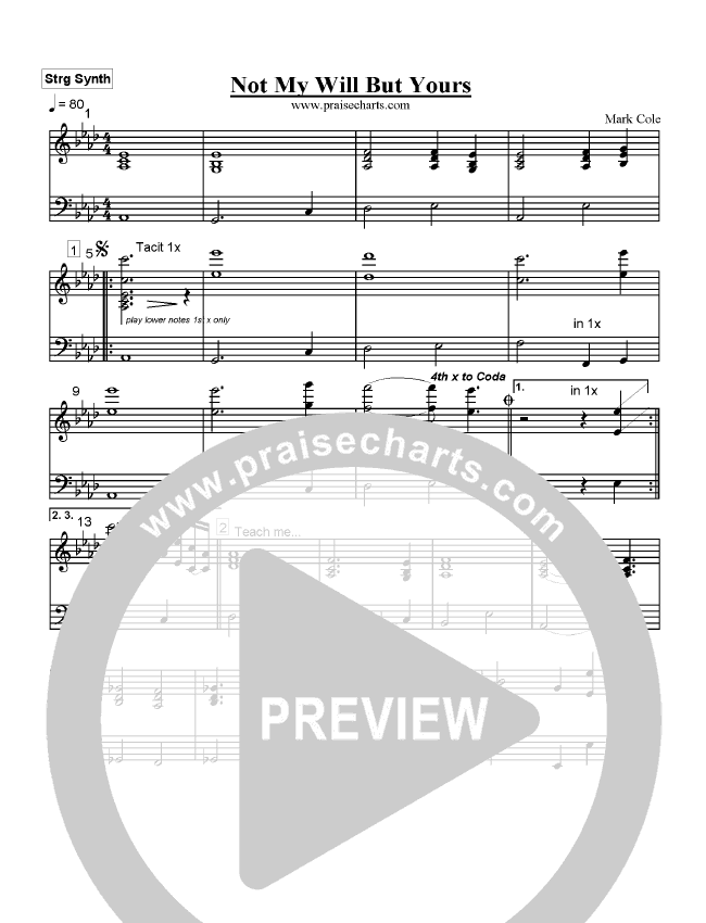 Download the Orchestration for Not My Will But Yours by Mark Cole, from the album Move In This City. This song was arranged by Mark Cole in the key of Ab.