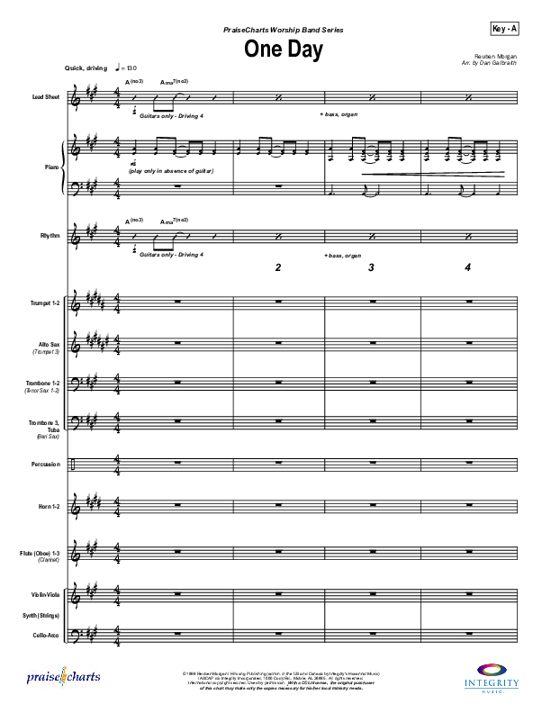 Download the Orchestration for One Day by Hillsong Worship, from the album For This Cause. This song was arranged by Daniel Galbraith in the key of A, G.