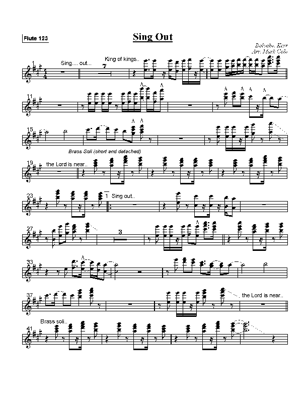 Download the Orchestration for Sing Out by Ron Kenoly, from the album Sing Out With One Voice. This song was arranged by Mark Cole in the key of A.