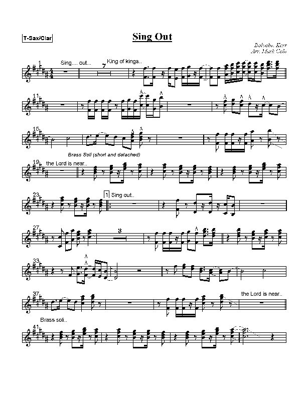 Download the Orchestration for Sing Out by Ron Kenoly, from the album Sing Out With One Voice. This song was arranged by Mark Cole in the key of A.