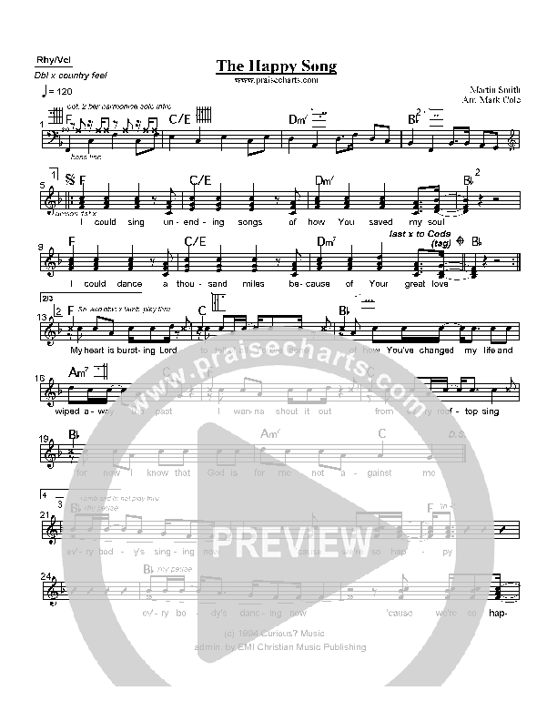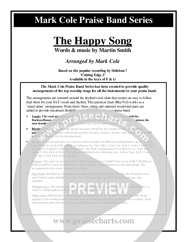 Download the Orchestration for The Happy Song by Delirious, from the album WOW Worship Yellow. This song was arranged by Mark Cole in the key of F.