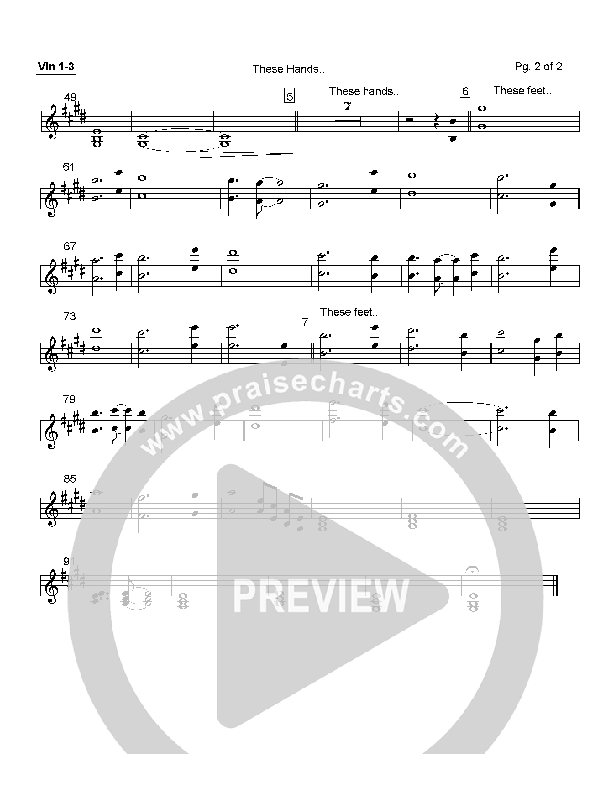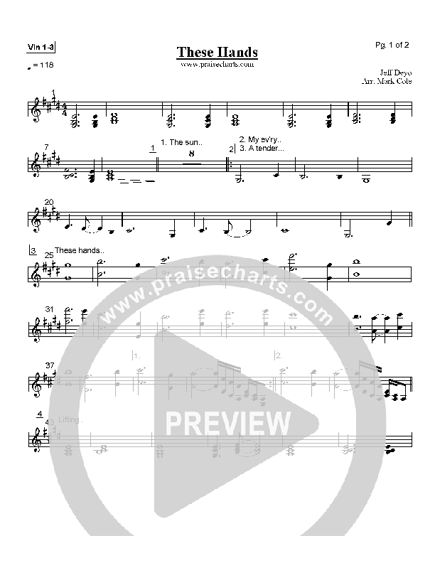 Download the Violin sheet music for These Hands by Jeff Deyo, from the album Songs Of Mark Cole. This song was arranged by Mark Cole in the key of E.