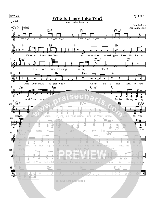 Download the Orchestration for Who is There Like You by Paul Oakley, from the album Worship Together Live: Vol. 1. This song was arranged by Mark Cole in the key of F.