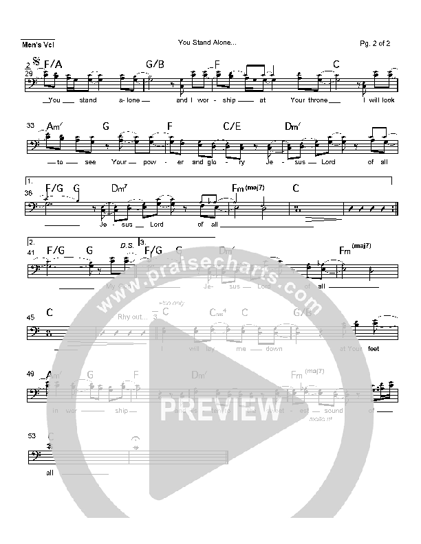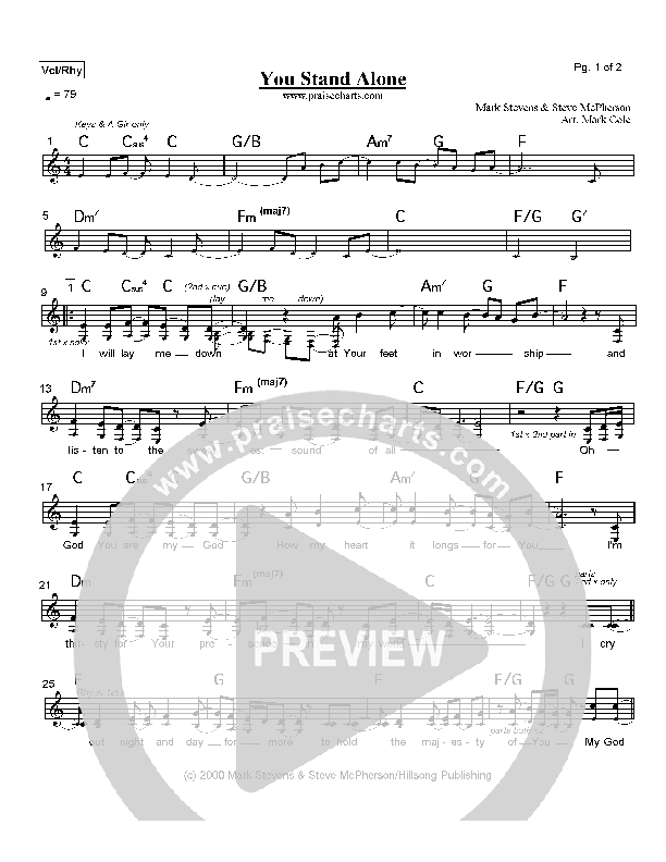 Download the Orchestration for You Stand Alone by Hillsong Worship, from the album You Are My World. This song was arranged by Mark Cole in the key of C, D.