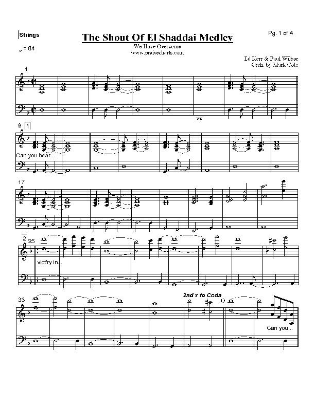 Download the Orchestration for The Shout Of El Shaddai Medley by Paul Wilbur, from the album Songs Of Mark Cole. This song was arranged by Mark Cole in the key of Dm.