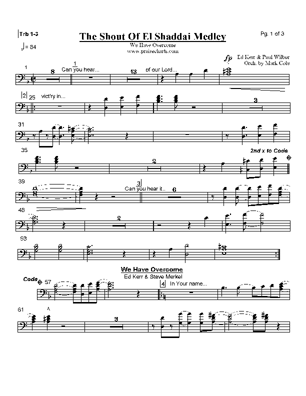Download the Orchestration for The Shout Of El Shaddai Medley by Paul Wilbur, from the album Songs Of Mark Cole. This song was arranged by Mark Cole in the key of Dm.