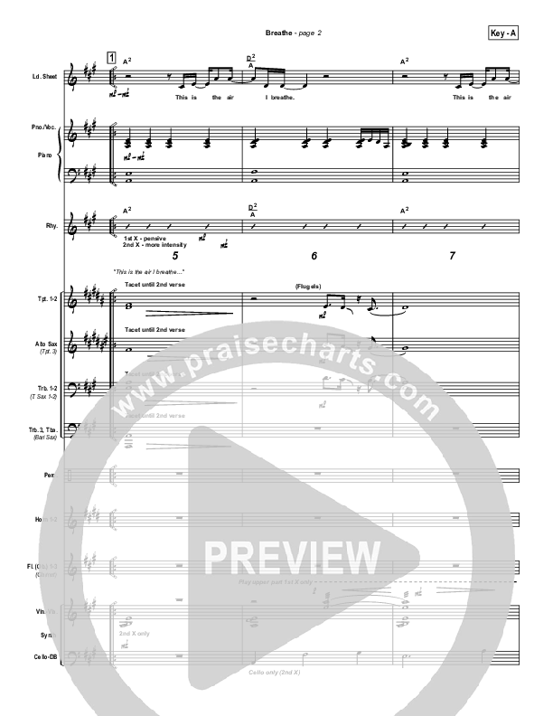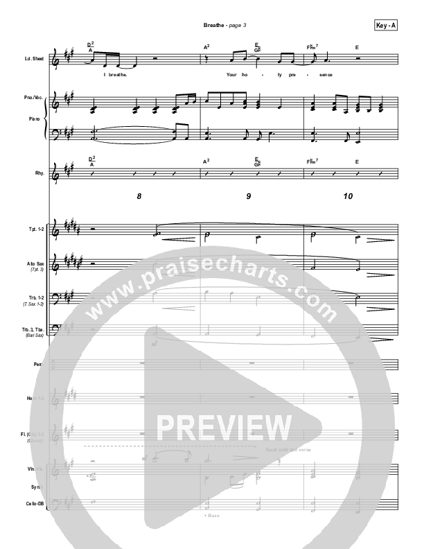 Download the Orchestration for Breathe / Yearn by Marie Barnett, from the album iWorship: DVD E. This song was arranged by Daniel Galbraith in the key of A, Bb.