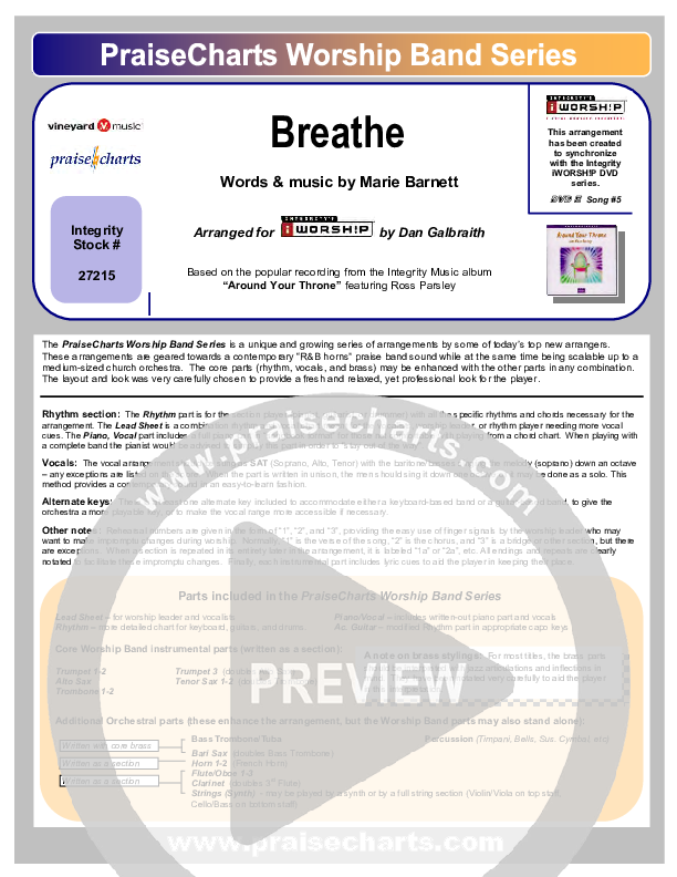 Download the Orchestration for Breathe / Yearn by Marie Barnett, from the album iWorship: DVD E. This song was arranged by Daniel Galbraith in the key of A, Bb.