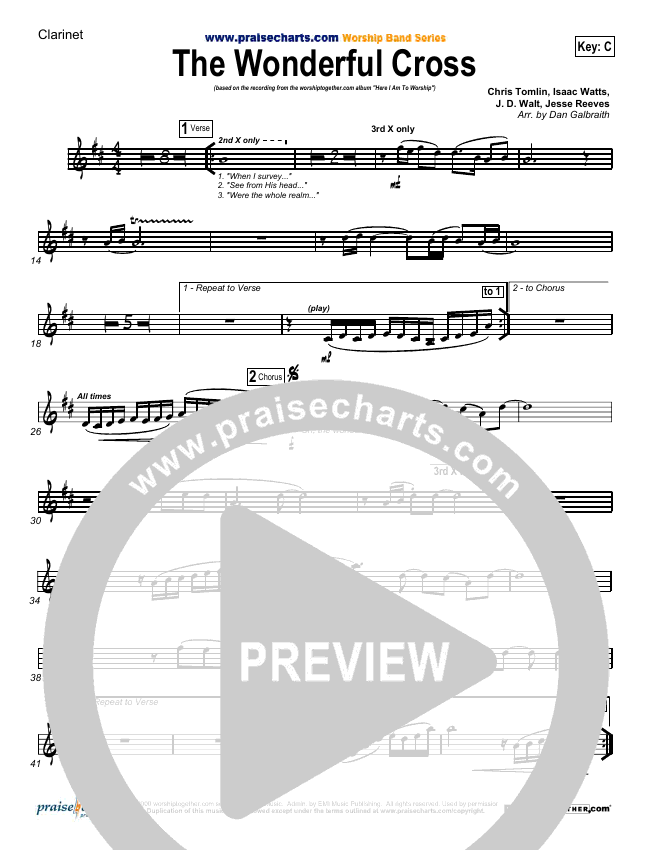 Download the Orchestration wind parts for The Wonderful Cross by Chris Tomlin, from the album The Noise We Make. This song was arranged by Daniel Galbraith in the key of C, D.