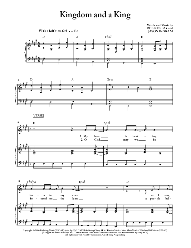 Kingdom And A King Sheet Music PDF (Robbie Seay)