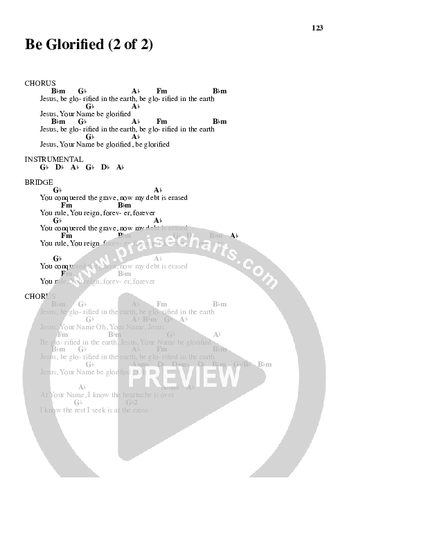 Download the PDF Chord Charts for Be Glorified by ALM:uk, from the album Name Above All Names. This song was arranged by Integrity Music in the key of Db.