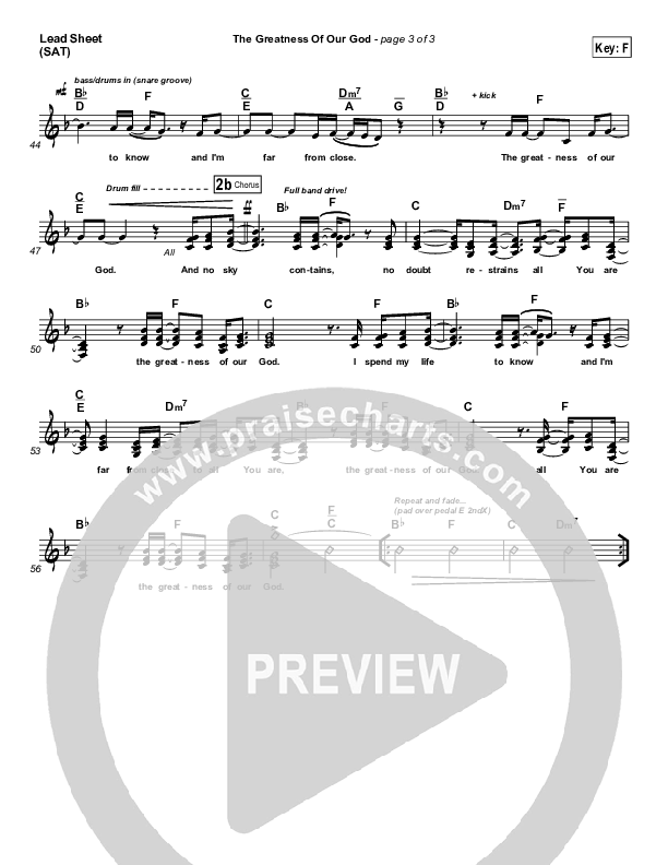 Download the sheet music for The Greatness Of Our God by One Sonic Society, from the album One - EP. This song was arranged by Joel Mott in the key of F, G.