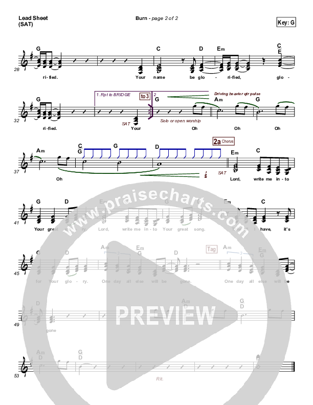 Download the sheet music for Burn by One Sonic Society, from the album One - EP. This song was arranged by Shane Ohlson in the key of G.