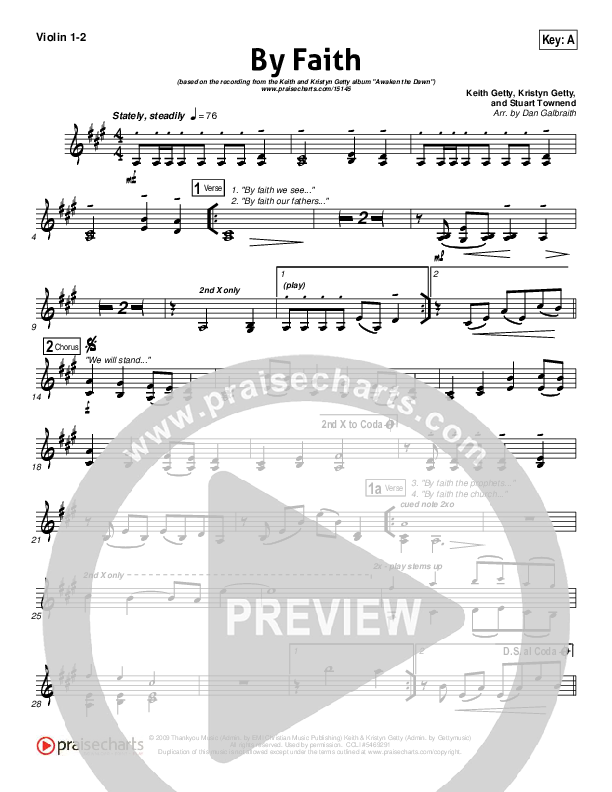 Download the Violin sheet music for By Faith by Keith & Kristyn Getty, from the album Awaken The Dawn. This song was arranged by Daniel Galbraith in the key of A, Ab, Bb, C.