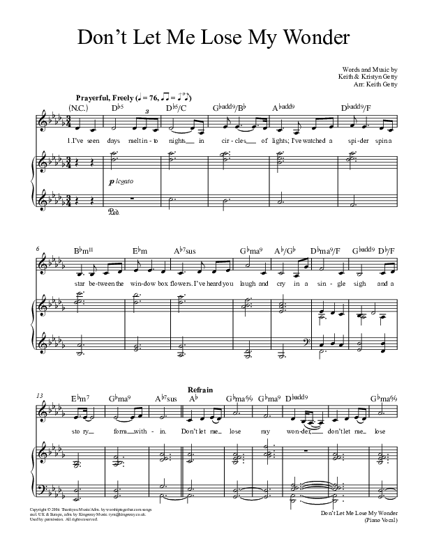 Download the sheet music for Don't Let Me Lose My Wonder by Keith & Kristyn Getty, from the album In Christ Alone.