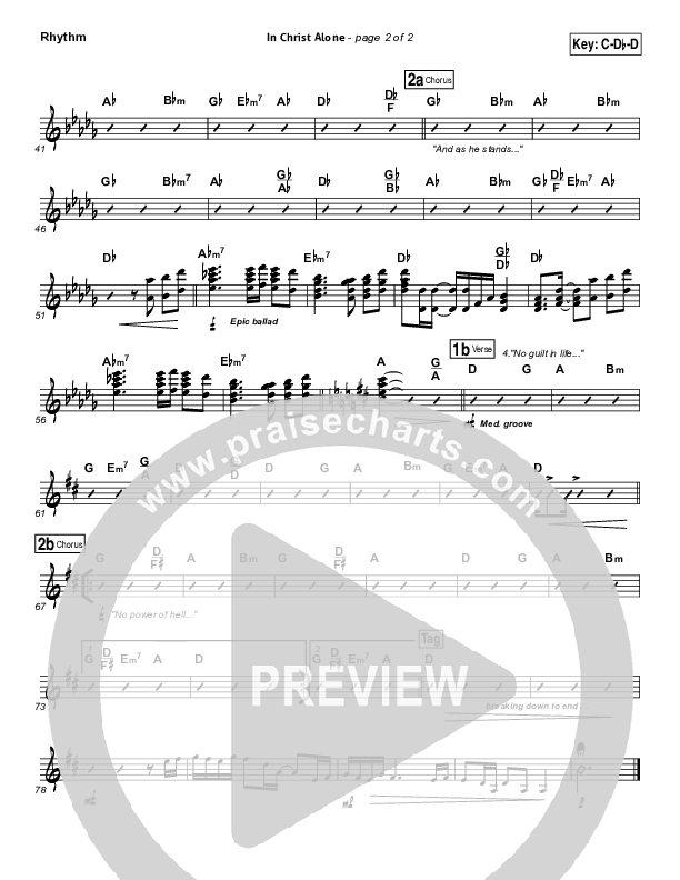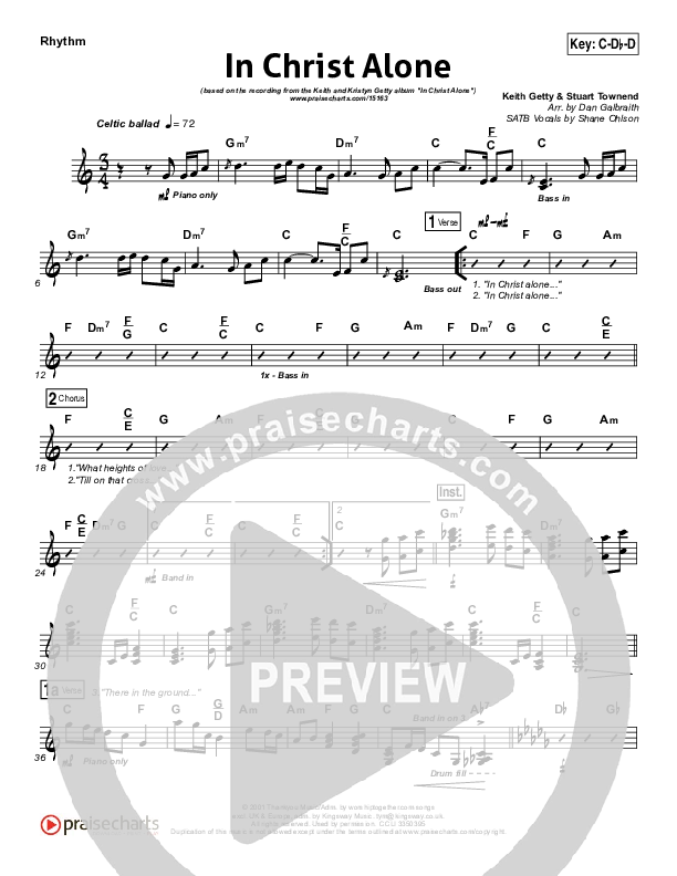 Download the Rhythm Chart for In Christ Alone by Keith & Kristyn Getty, from the album In Christ Alone. This song was arranged by Daniel Galbraith in the key of C, D.