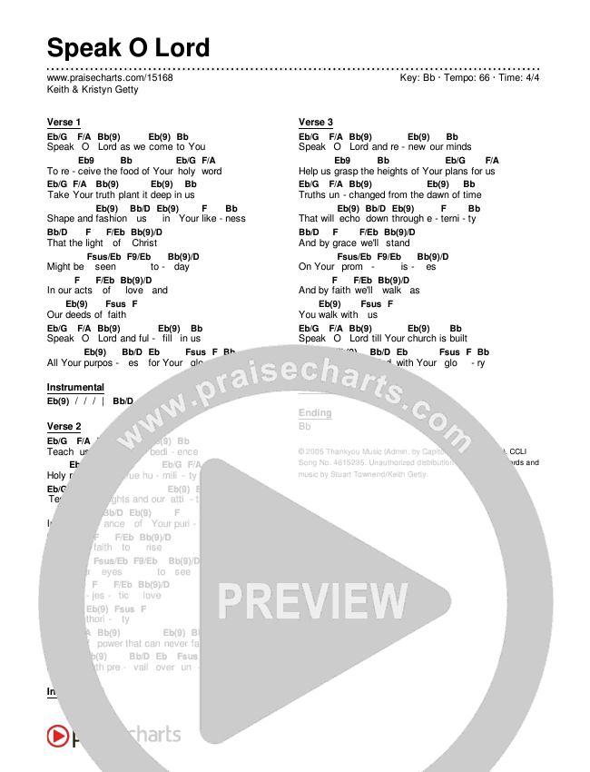 Download the PDF Chord Charts for Speak O Lord by Keith & Kristyn Getty, from the album In Christ Alone.