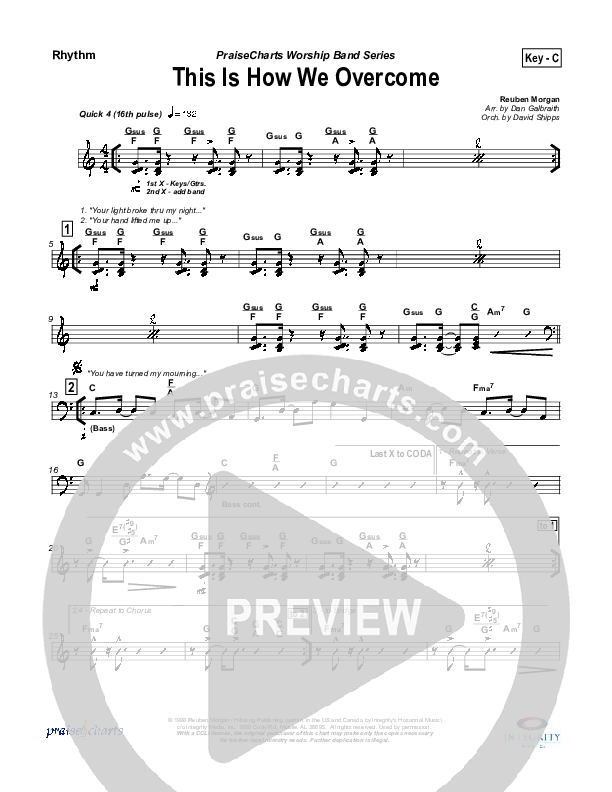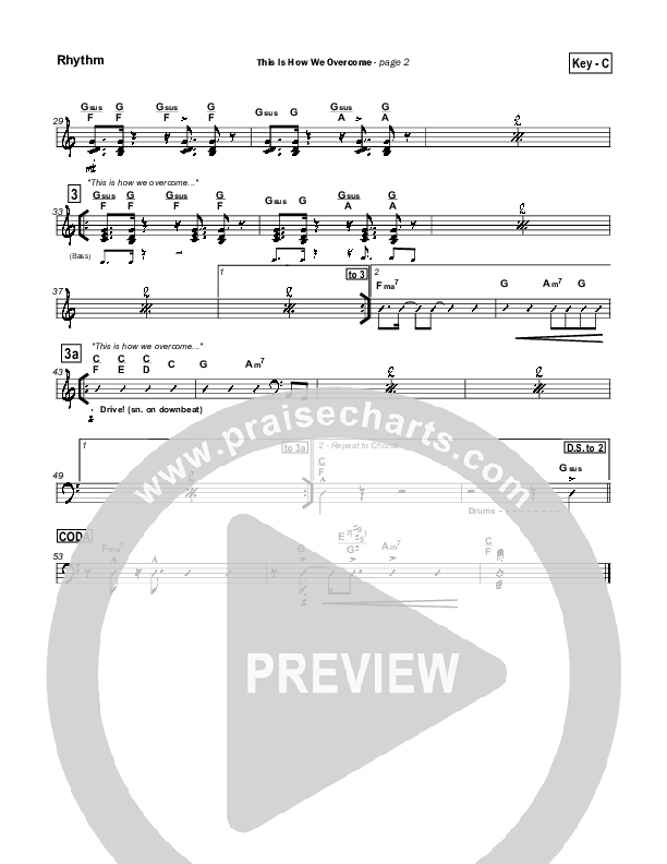 Download the Rhythm Chart for This is How We Overcome by Hillsong Worship, from the album By Your Side. This song was arranged by Daniel Galbraith / David Shipps in the key of Bb, C.