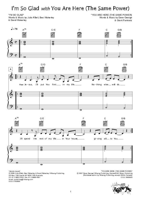 I'm So Glad (with You Are Here) Sheet Music PDF (Hillsong Kids)