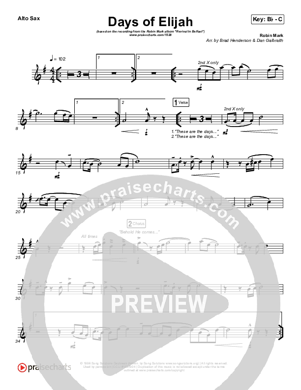 Days of Elijah Alto Sax Sheet Music PDF (Robin Mark)