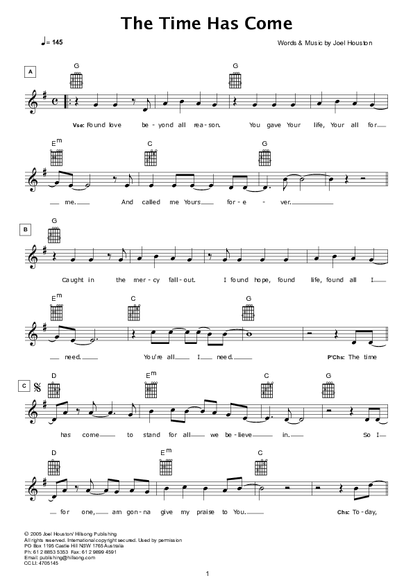 Download the Orchestration for The Time Has Come by Hillsong Worship, from the album Yahweh. This song was arranged by Hillsong Music in the key of G.