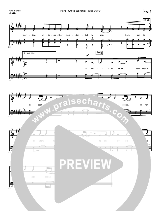 Download the Choir Sheet for Here I Am To Worship by Chris Tomlin / Passion, from the album Passion: Our Love Is Loud. This song was arranged by Daniel Galbraith / David Shipps in the key of E, F.