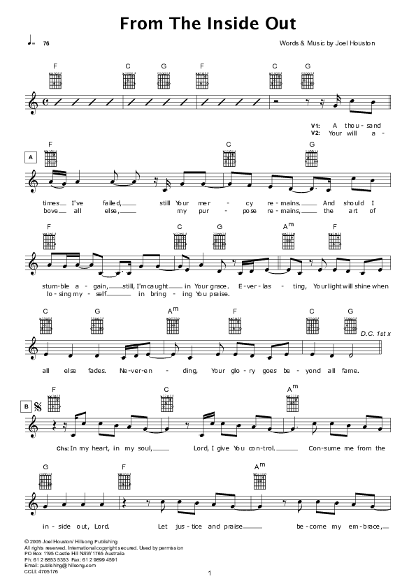 Download the Orchestration for From The Inside Out by Hillsong Worship, from the album Yahweh. This song was arranged by Hillsong Music in the key of C.