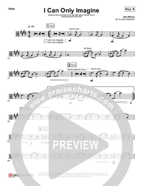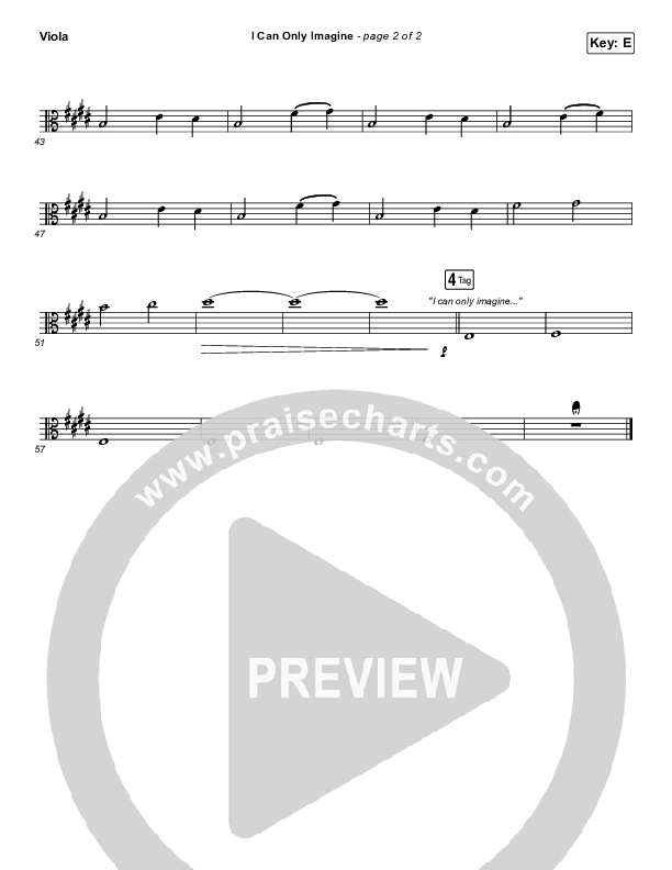 Download the Viola sheet music for I Can Only Imagine by MercyMe, from the album Almost There. This song was arranged by Daniel Galbraith in the key of D, E, Eb.
