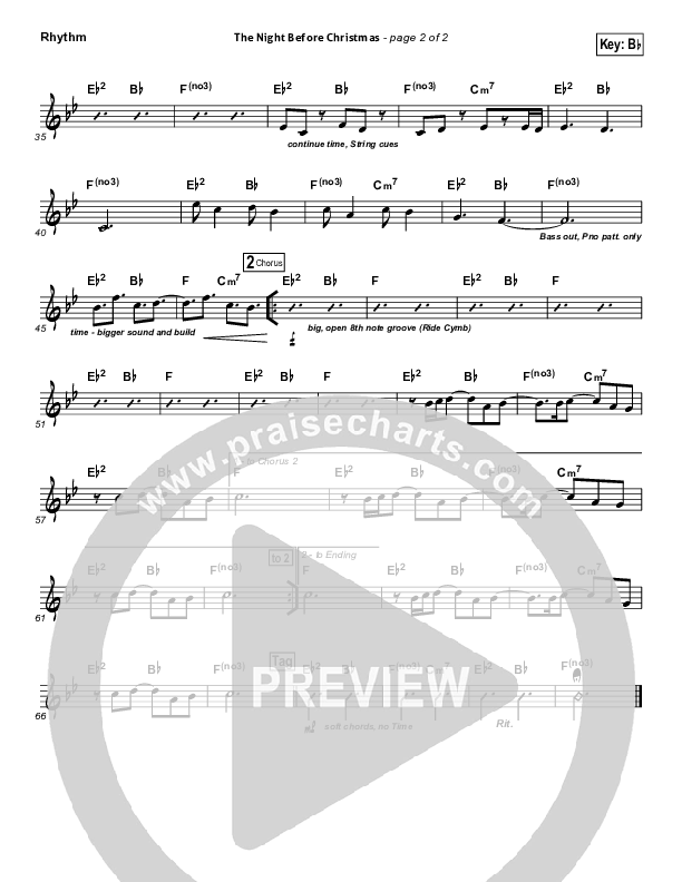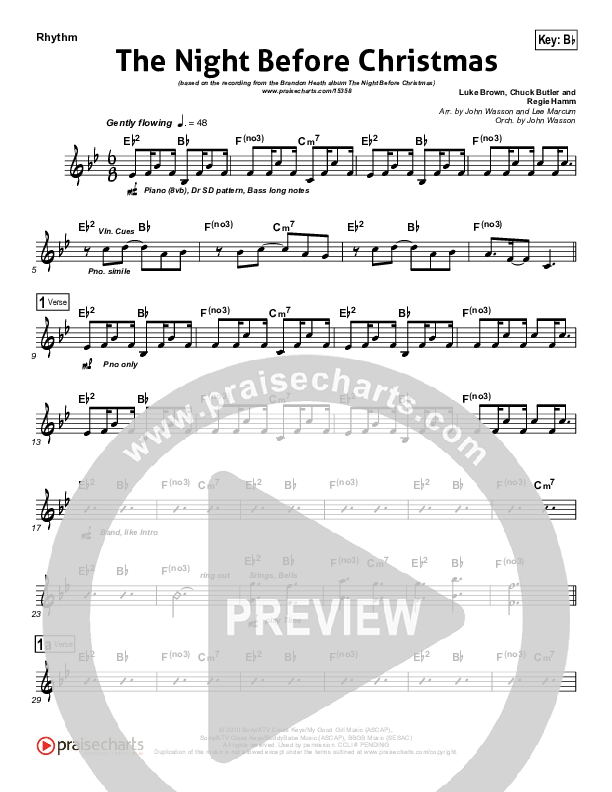 Download the Rhythm Chart for The Night Before Christmas by Brandon Heath, from the album The Night Before Christmas. This song was arranged by John Wasson / Lee Marcum in the key of A, Bb.