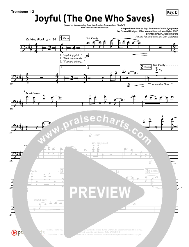 Download the Orchestration brass parts for Joyful (The One Who Saves) by Brenton Brown, from the album Our God Is Near. This song was arranged by Daniel Galbraith in the key of C, D.