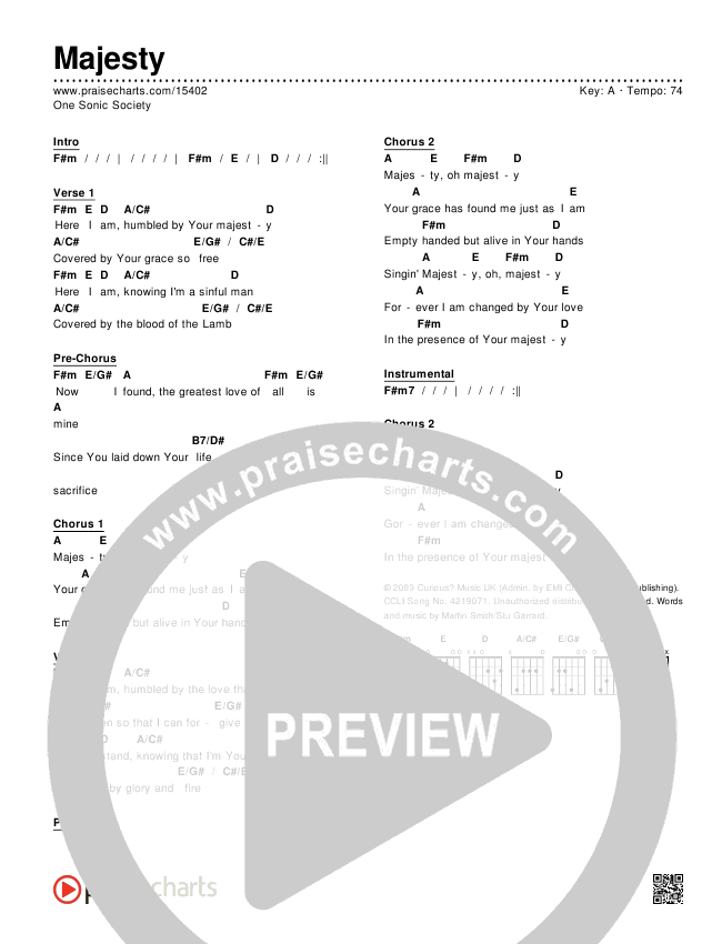Download the PDF Chord Charts for Majesty by One Sonic Society, from the album Sonic - EP. This song was arranged by Brad Henderson in the key of B, Bb.