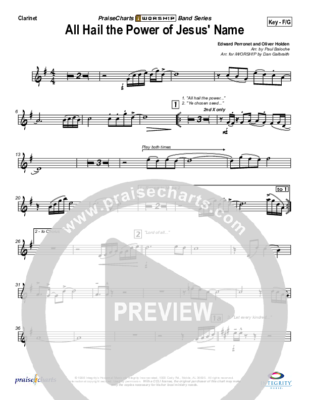 Download the Orchestration for All Hail the Power of Jesus Name by Paul Baloche, from the album iWorship CD (Vol. 1). This song was arranged by Daniel Galbraith in the key of F, G.