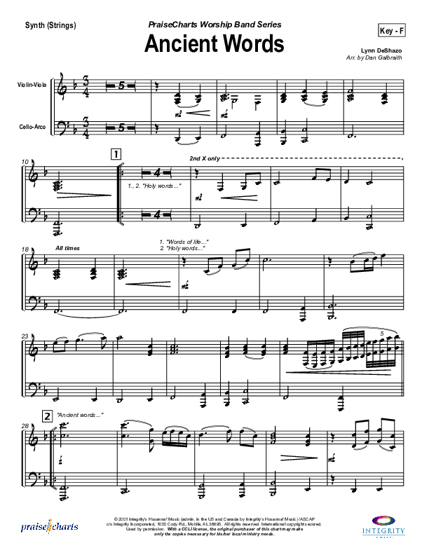 Download the Orchestration for Ancient Words by Michael W. Smith, from the album Worship Again. This song was arranged by Daniel Galbraith in the key of F, G.
