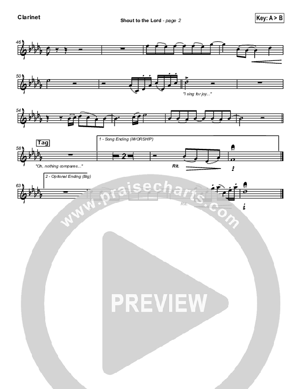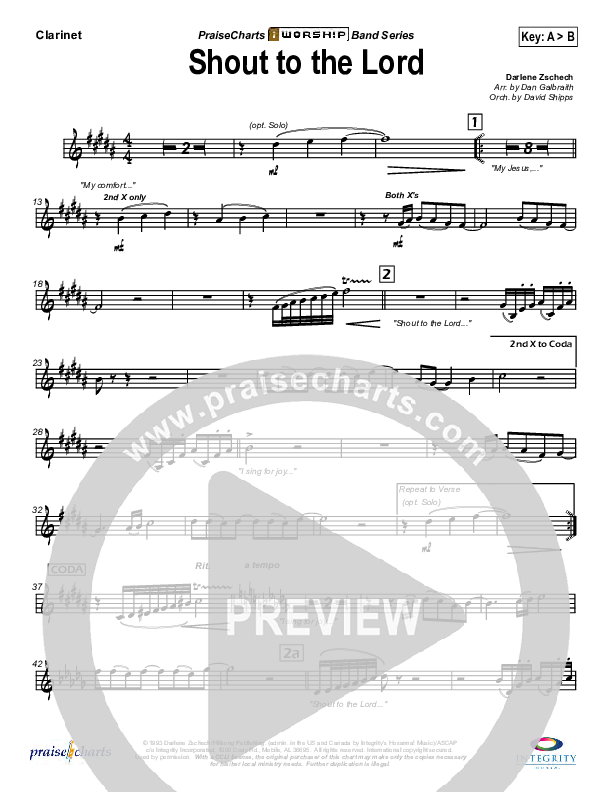 Download the Clarinet sheet music for Shout To The Lord by Hillsong Worship, from the album Shout To The Lord. This song was arranged by Daniel Galbraith / David Shipps in the key of A, Bb.