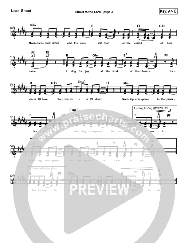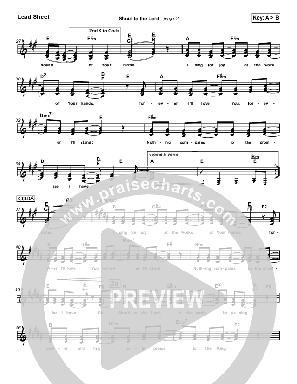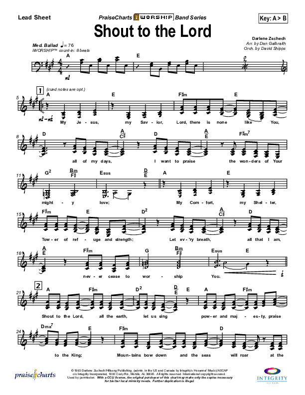 Download the Orchestration for Shout To The Lord by Hillsong Worship, from the album Shout To The Lord. This song was arranged by Daniel Galbraith / David Shipps in the key of A, Bb.