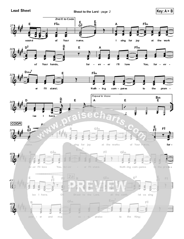 Download the sheet music for Shout To The Lord by Hillsong Worship, from the album Shout To The Lord. This song was arranged by Daniel Galbraith / David Shipps in the key of A, Bb.