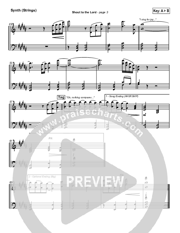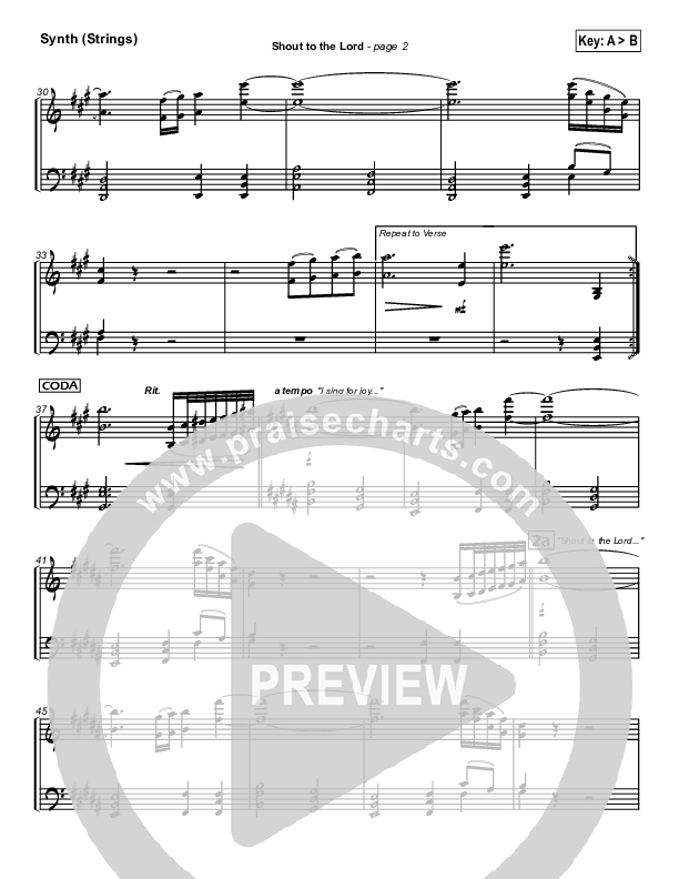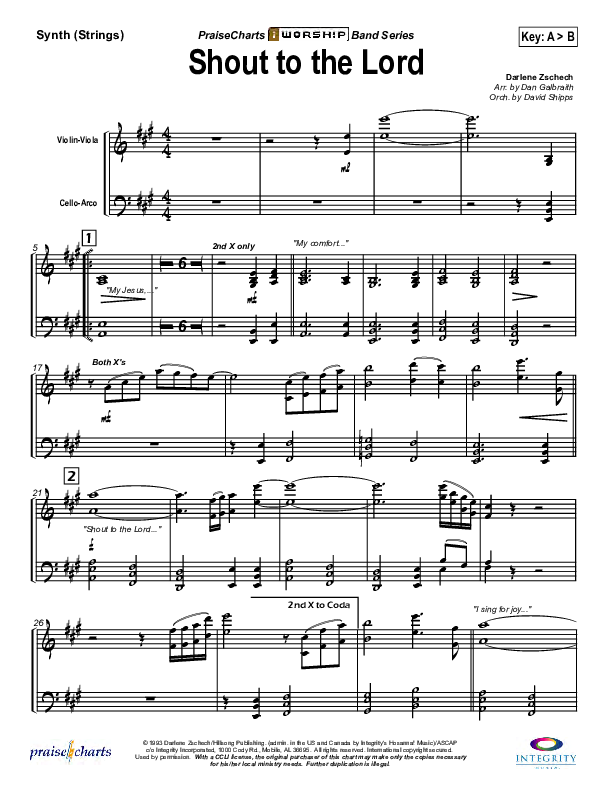 Download the Orchestration for Shout To The Lord by Hillsong Worship, from the album Shout To The Lord. This song was arranged by Daniel Galbraith / David Shipps in the key of A, Bb.