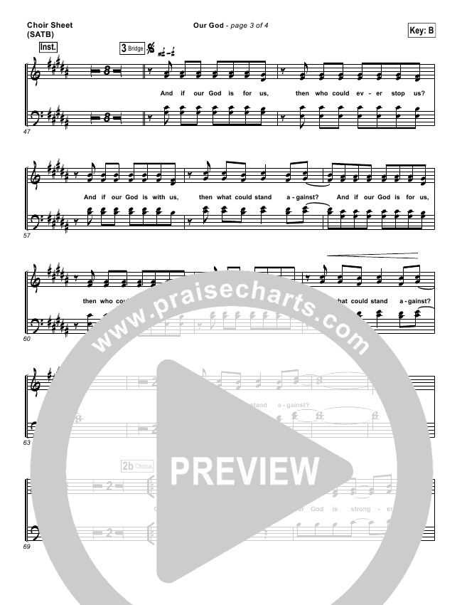 Download the Choir Sheet for Our God by Chris Tomlin, from the album And If Our God Is For Us. This song was arranged by Joel Mott / Erik Foster in the key of A, B, Bb, C, G.
