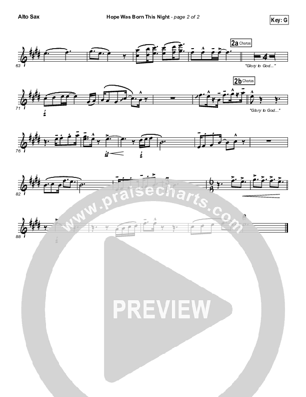 Download the AltoSax sheet music for Hope Was Born This Night by Sidewalk Prophets, from the album Come Now Our King. This song was arranged by Brad Henderson in the key of F, G.