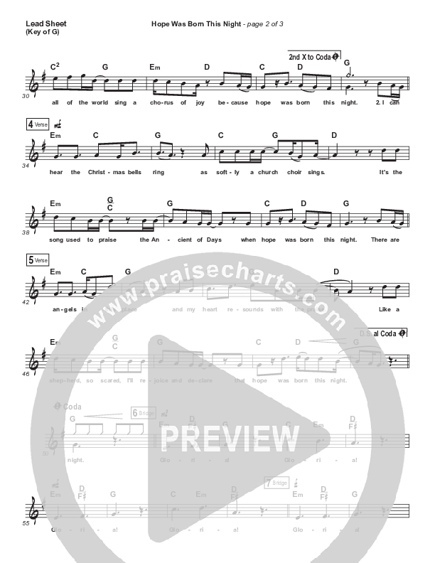 Download the sheet music for Hope Was Born This Night by Sidewalk Prophets, from the album Come Now Our King. This song was arranged by Brad Henderson in the key of F, G.