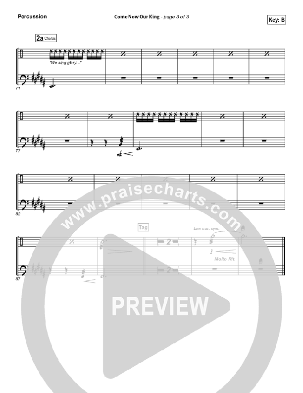 Come Now Our King Percussion Sheet Music PDF (Chris August)