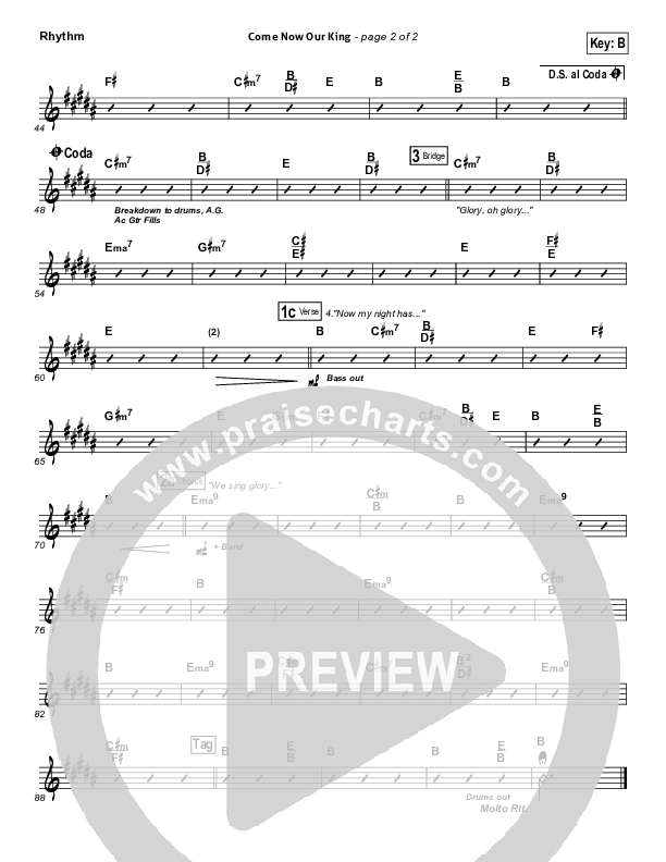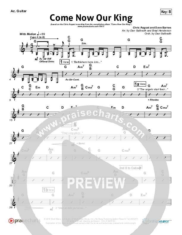 Download the Rhythm Chart for Come Now Our King by Chris August, from the album WOW Christmas Silver. This song was arranged by Daniel Galbraith / Brad Henderson in the key of B, Bb.