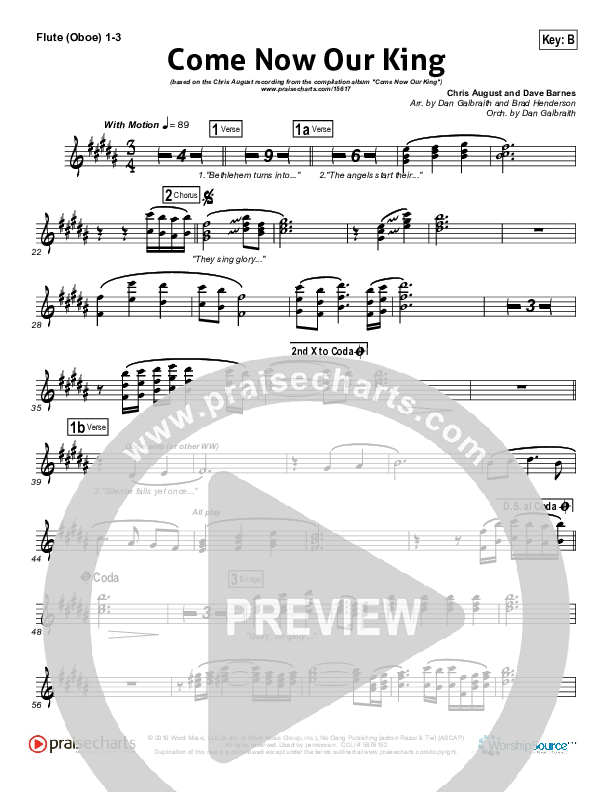 Download the Orchestration wind parts for Come Now Our King by Chris August, from the album WOW Christmas Silver. This song was arranged by Daniel Galbraith / Brad Henderson in the key of B, Bb.