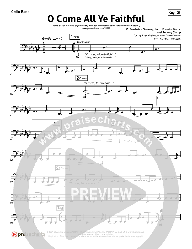 Download the Orchestration for O Come All Ye Faithful by Jeremy Camp, from the album O Come All Ye Faithful. This song was arranged by Daniel Galbraith / Aaron Wade in the key of F, Gb.