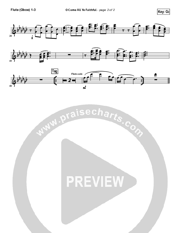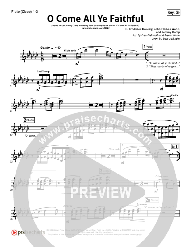 Download the Flute/Oboe sheet music for O Come All Ye Faithful by Jeremy Camp, from the album O Come All Ye Faithful. This song was arranged by Daniel Galbraith / Aaron Wade in the key of F, Gb.