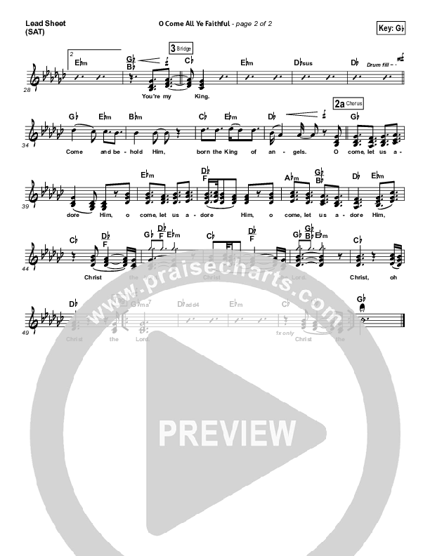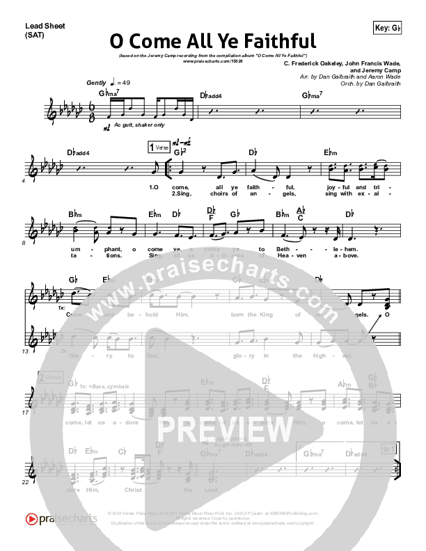 Download the sheet music for O Come All Ye Faithful by Jeremy Camp, from the album O Come All Ye Faithful. This song was arranged by Daniel Galbraith / Aaron Wade in the key of F, Gb.