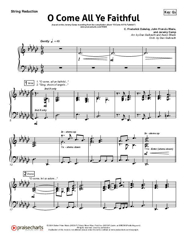 Download the Orchestration for O Come All Ye Faithful by Jeremy Camp, from the album O Come All Ye Faithful. This song was arranged by Daniel Galbraith / Aaron Wade in the key of F, Gb.
