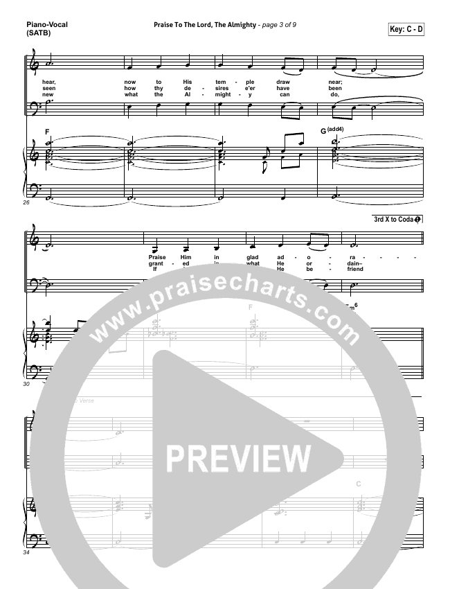 Download the sheet music for Praise To The Lord The Almighty by Christy Nockels / Passion, from the album Passion: Hymns Ancient and Modern. This song was arranged by Daniel Galbraith / John Carlson in the key of C, D.